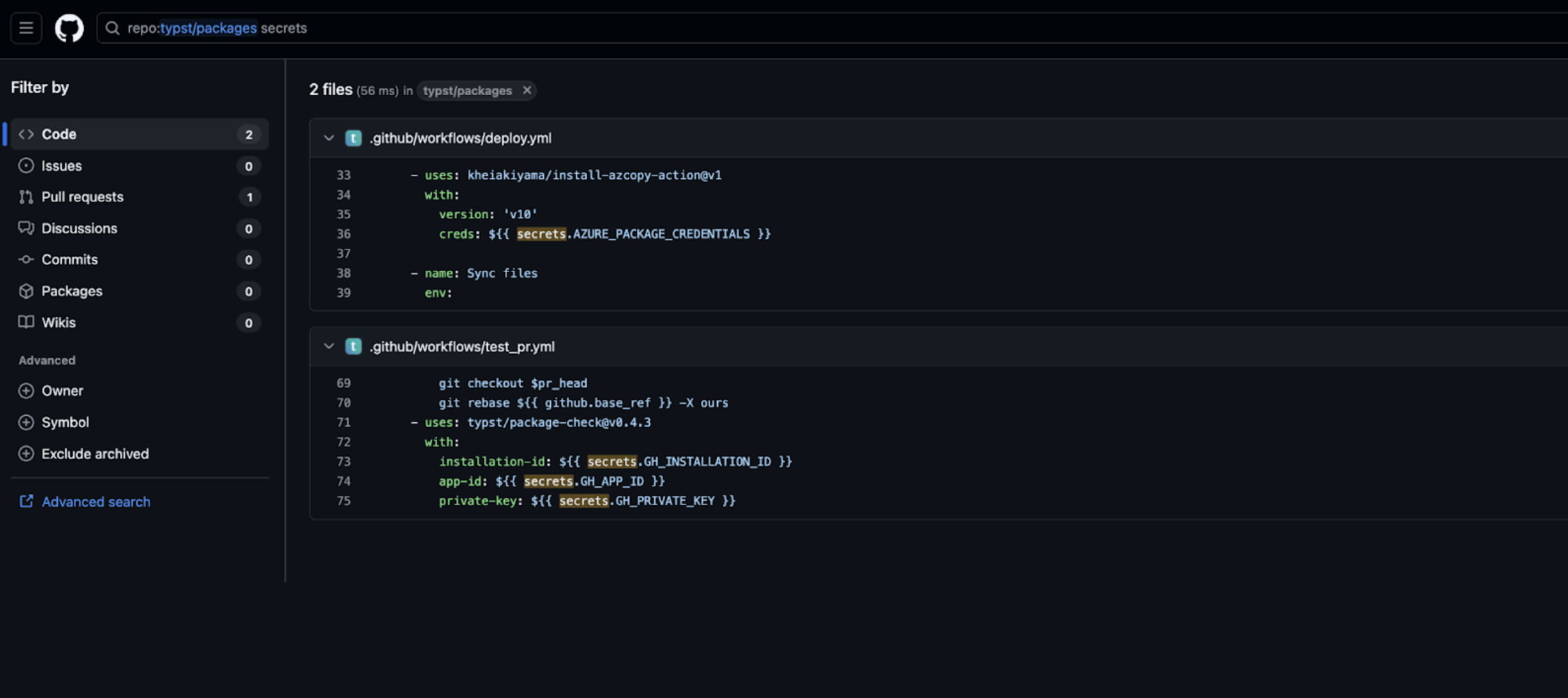 AZURE_PACKAGE_CREDENTIALS- Allows upload/modify packages in Azure CDNGH_PRIVATE_KEY- Provides full GitHub App authenticationGH_APP_ID+GH_INSTALLATION_ID- Provides token minting capabilities across the Typst organization