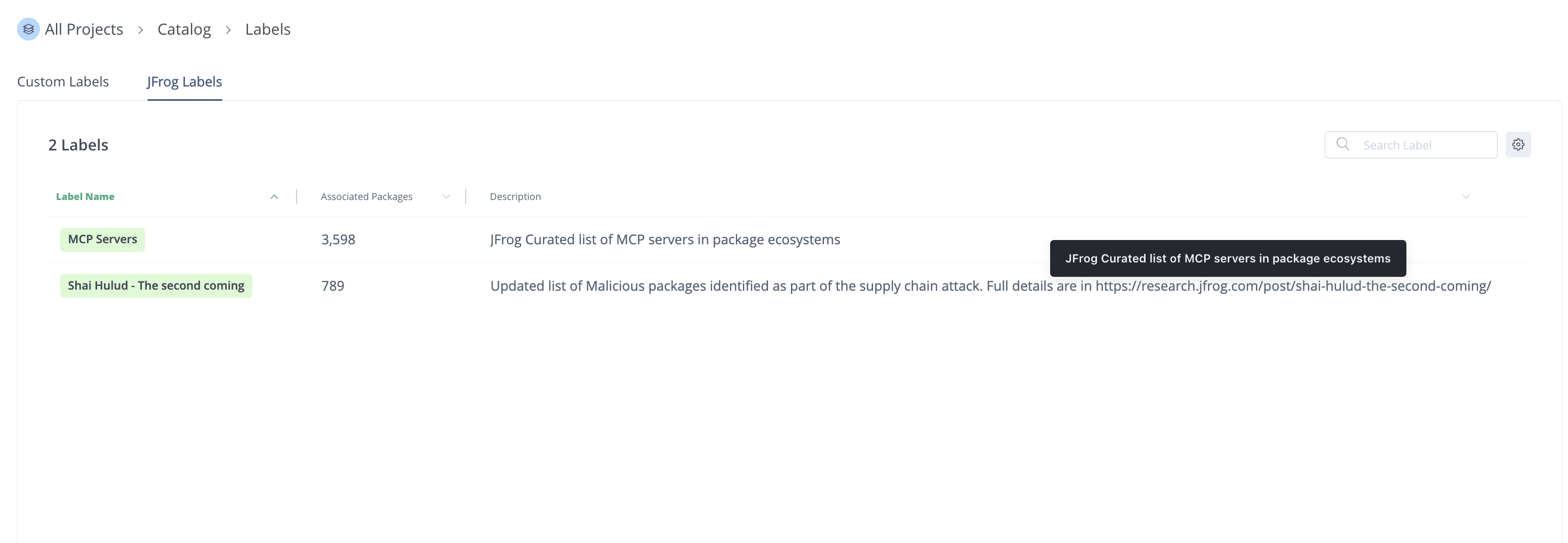 - Curation customers can utilize Catalog's new JFrog label, "Shai Hulud - The second coming", which enumerates all the compromised packages.