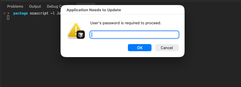 "User's password is required to proceed.",